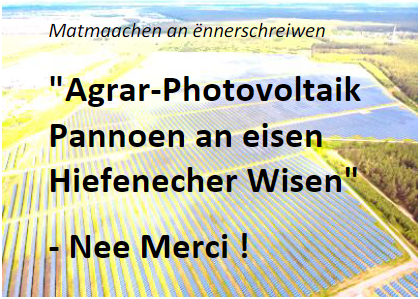 - “Agrar-Photovoltaik Pannoen an eisen Hiefenecher Wisen”- Nee Merci !